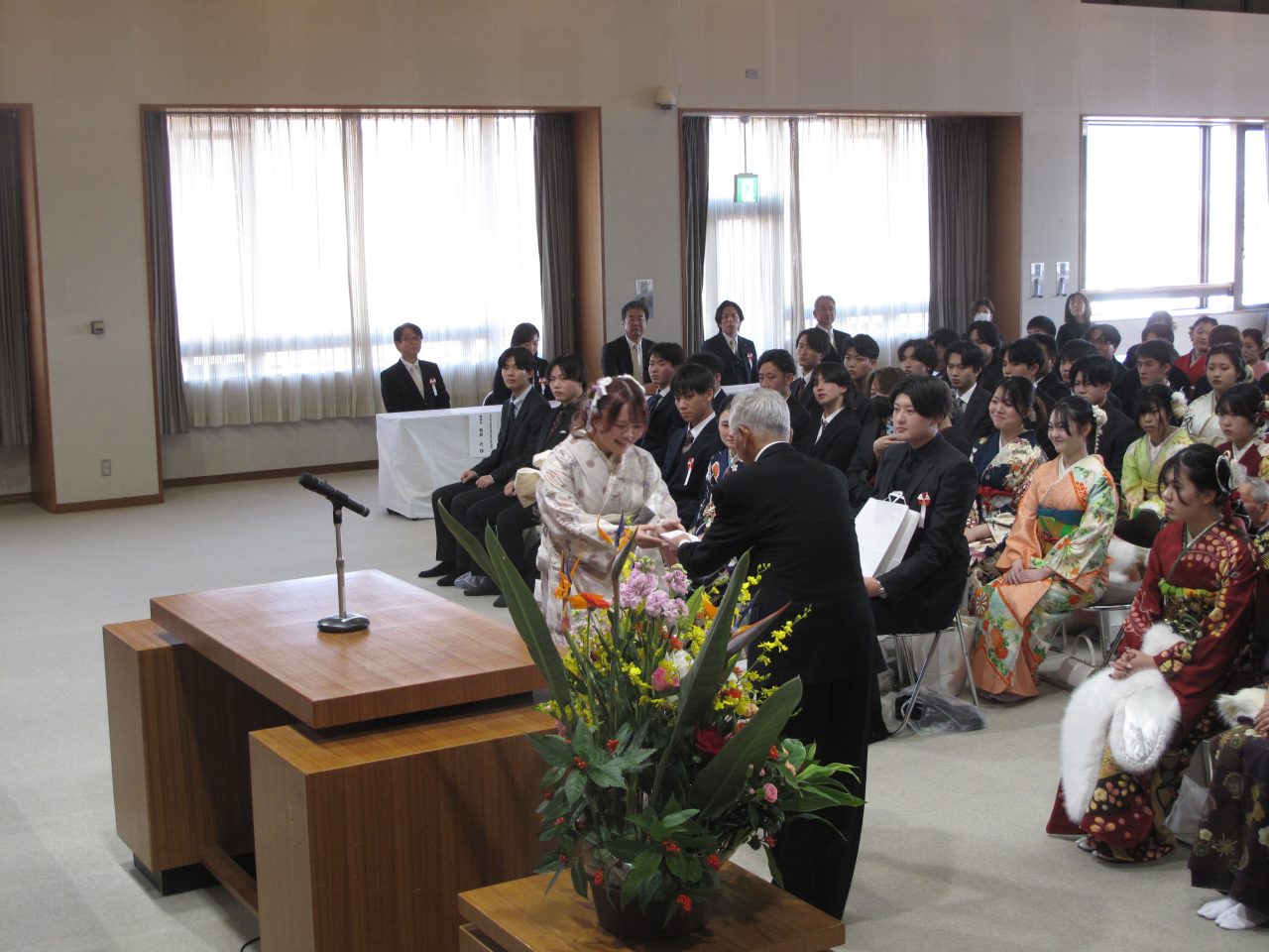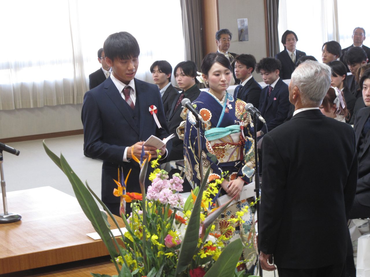 1月11日(日)西部コミュニティセンターに於いて黒野地区「二十歳のつどい」が開催されました。該当参加者は93名。始めに西垣薫自治会連合会長の式辞、記念品の贈呈、続いて岐阜市長(代理)及び来賓の方々より祝辞がありました。黒野小学校在籍時の恩師からのお祝いの言葉もあり、和やかな雰囲気の中で進められます。アトラクションとして黒野城研究会による黒野の歴史、及び黒野城の紙芝居が上演されました。最後に出席者を代表して白木颯人さん大澤良美さんによる「二十歳の誓い」があり、故郷への感謝と誇りを大切に歩んでいきたい・・・と力強く語ってくれました。