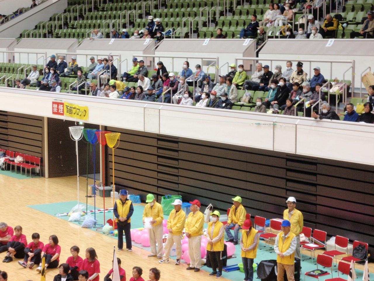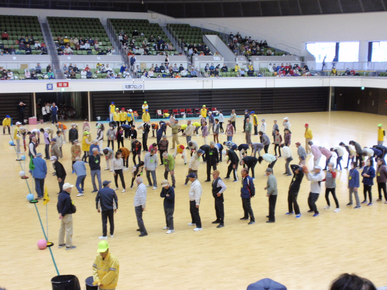 標記の大会が10月31日(金)9時半から12時半の間、メモリアルセンター第1体育館で開かれ、市老連傘下の44地区の老人クラブ会員千余名が集い、5ブロックに分かれて、12の競技種目を競い合った。黒野は西部ブロックの一員として50余名が参加したが、西部は健闘むなしく2年連続して最下位でした。優勝が北部、準優勝は中央と東部でした。写真は開会式、西部ブロック席、ボール体操、本郷幼稚園児の鼓笛隊の一コマです。