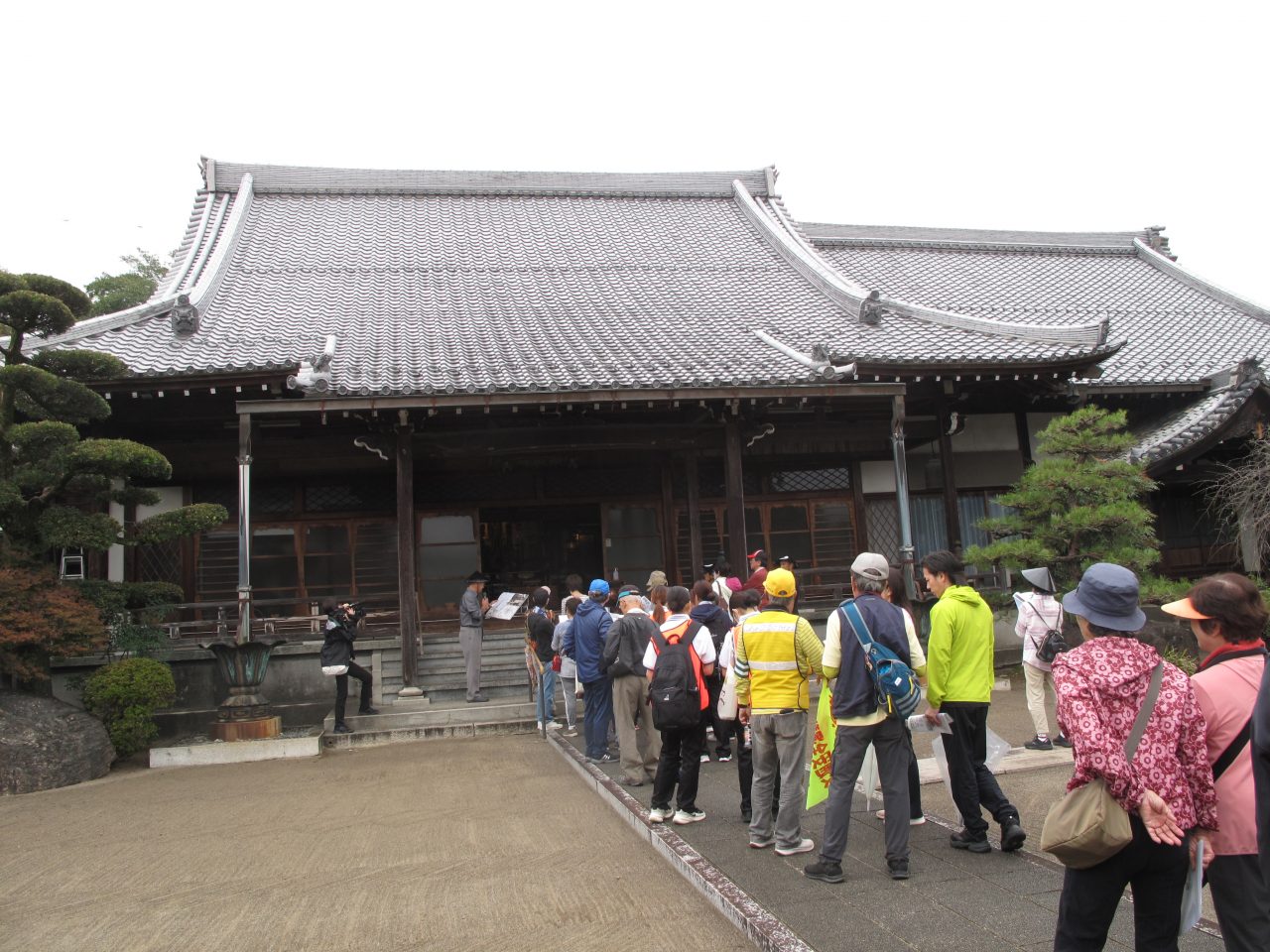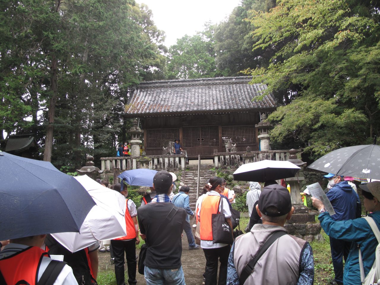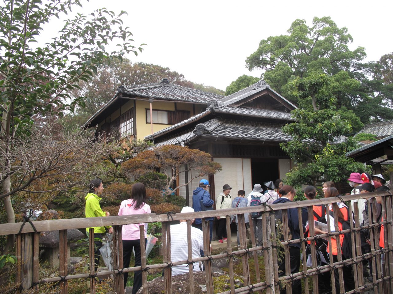 小雨の降る中、市原家(旧国島家)を見学する参加者