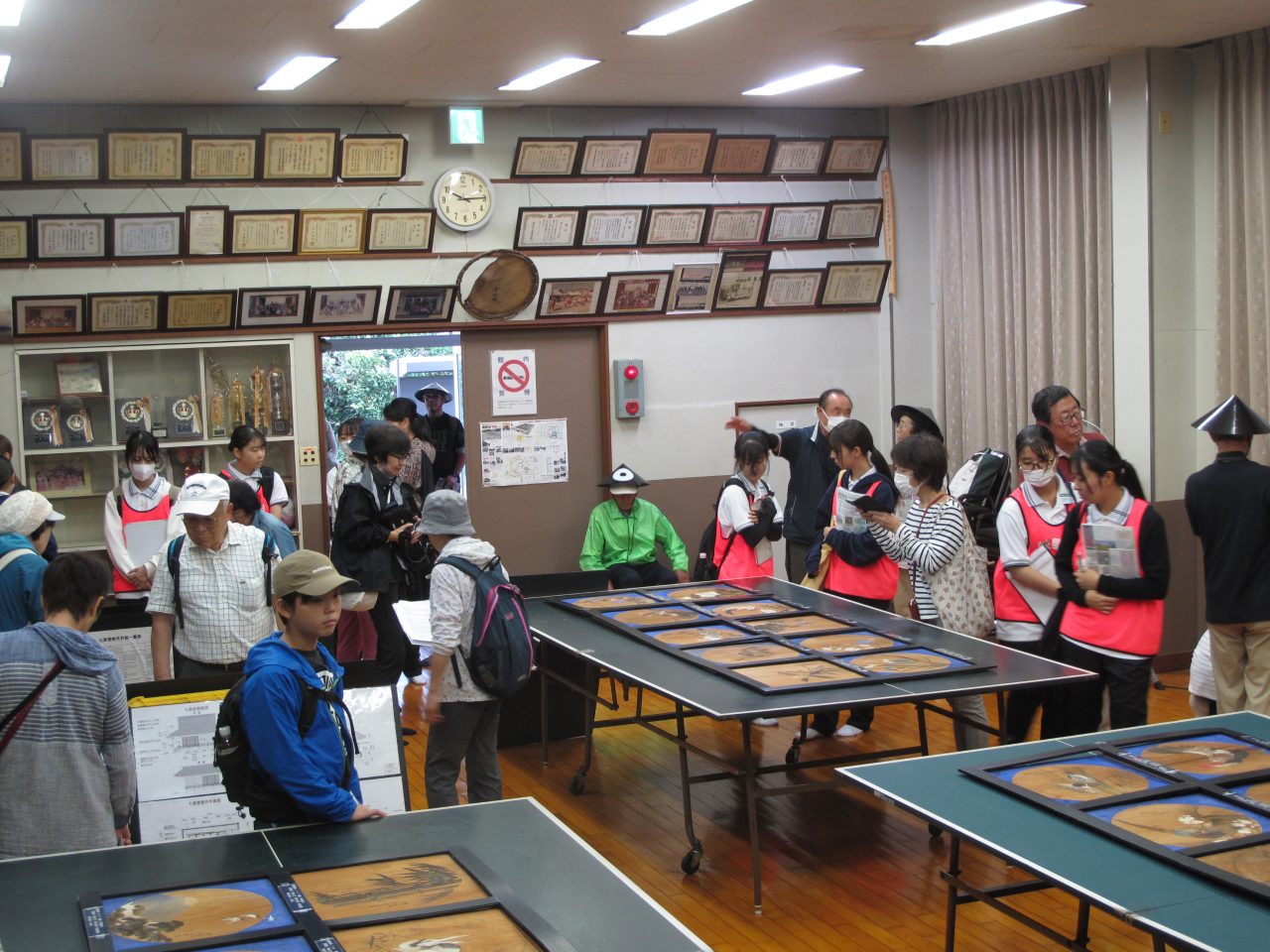 10月11日(土)黒野歴史探訪が70余名の参加を得て開催されました。古市場の市原家住宅(旧国島家)、熊野神社、浄土宗のお寺超勝寺、七面堂にあった天井絵の鑑賞、今川の八幡神社などを巡り、それぞれの場所において、黒野城研究会の方から歴史的背景や謂れなどの説明を受けました。また、岐阜大学看護学科の学生18名も参加し、地域の方々との交流を深めていました。